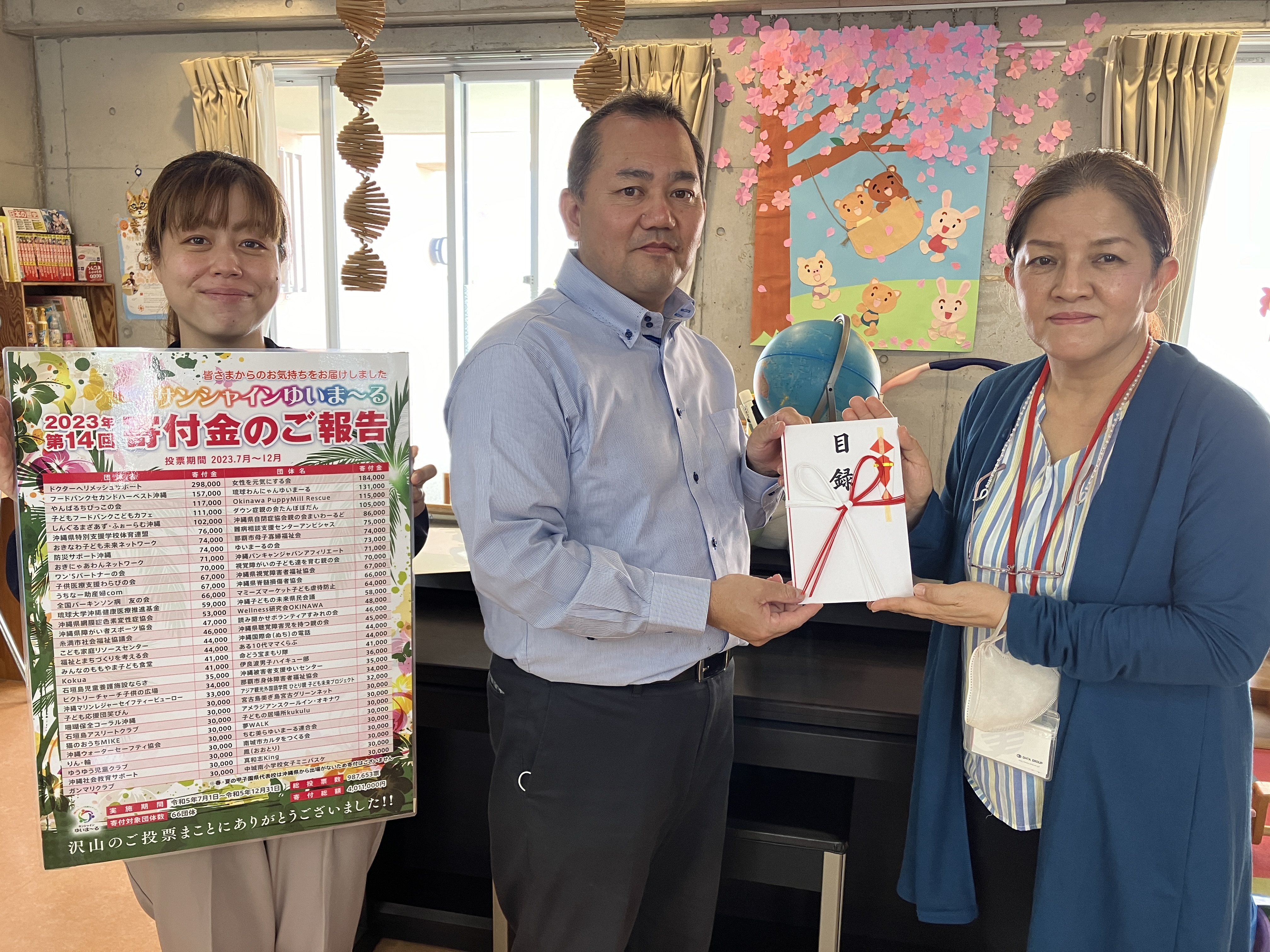 サンシャインゆいま~る 第13回(投票期間2023年1月~6月)寄付贈呈を行いました。