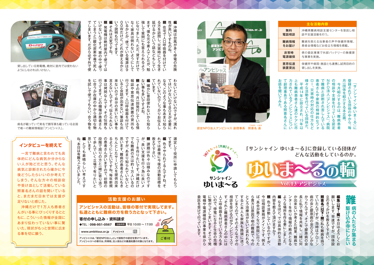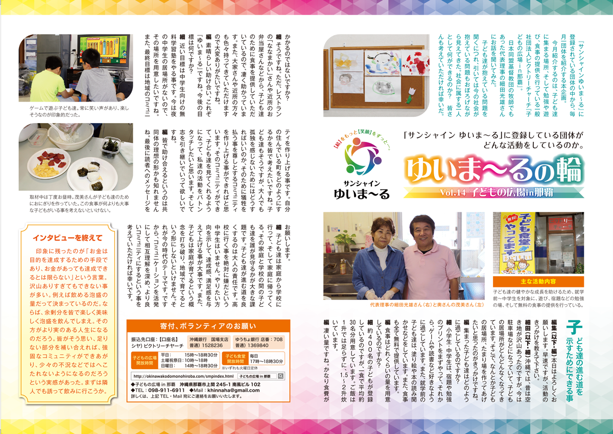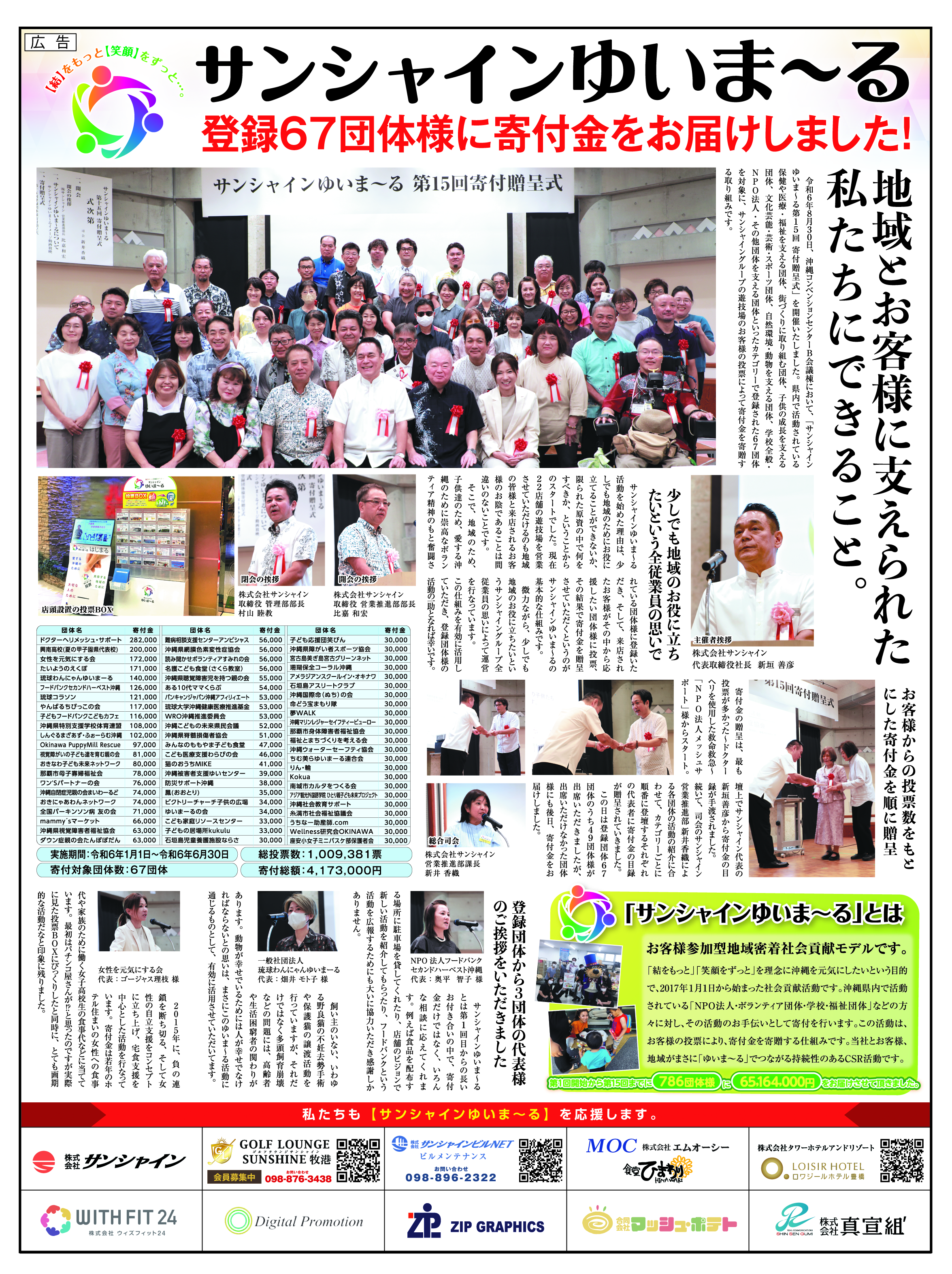 サンシャインとお客様、地域がまさに「ゆいま~る」で繋がる持続性のあるCSR活動です。