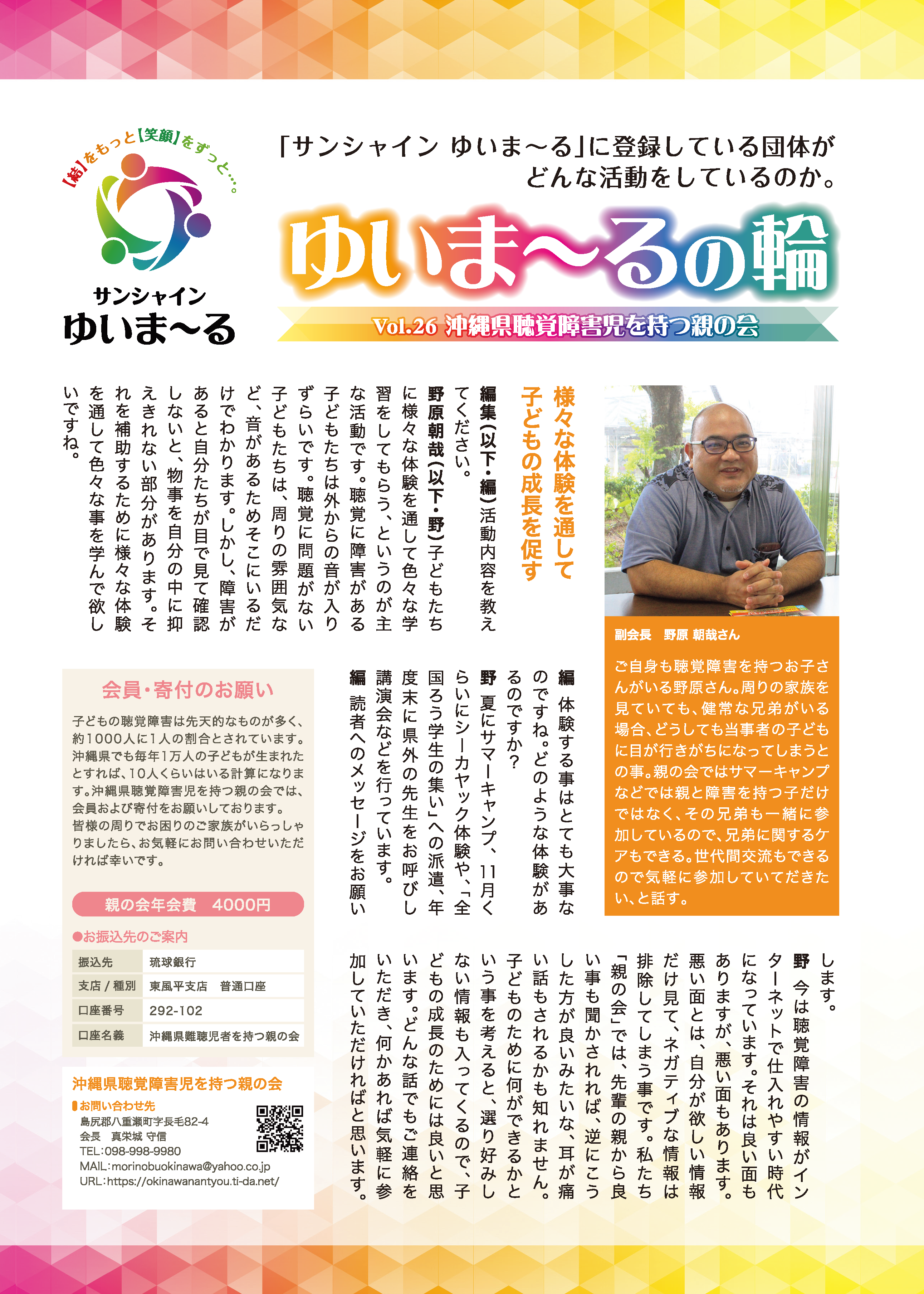 | 10 | ①保健・医療・福祉をささえる団体 | 沖縄県聴覚障害児を持つ親の会 | 確認 |