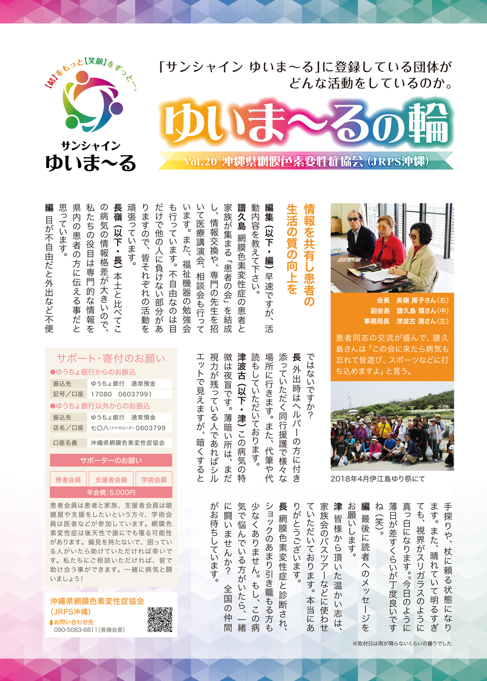 沖縄県網膜色素変性症協会(JRPS沖縄)様より御礼状を拝受いたしました。
