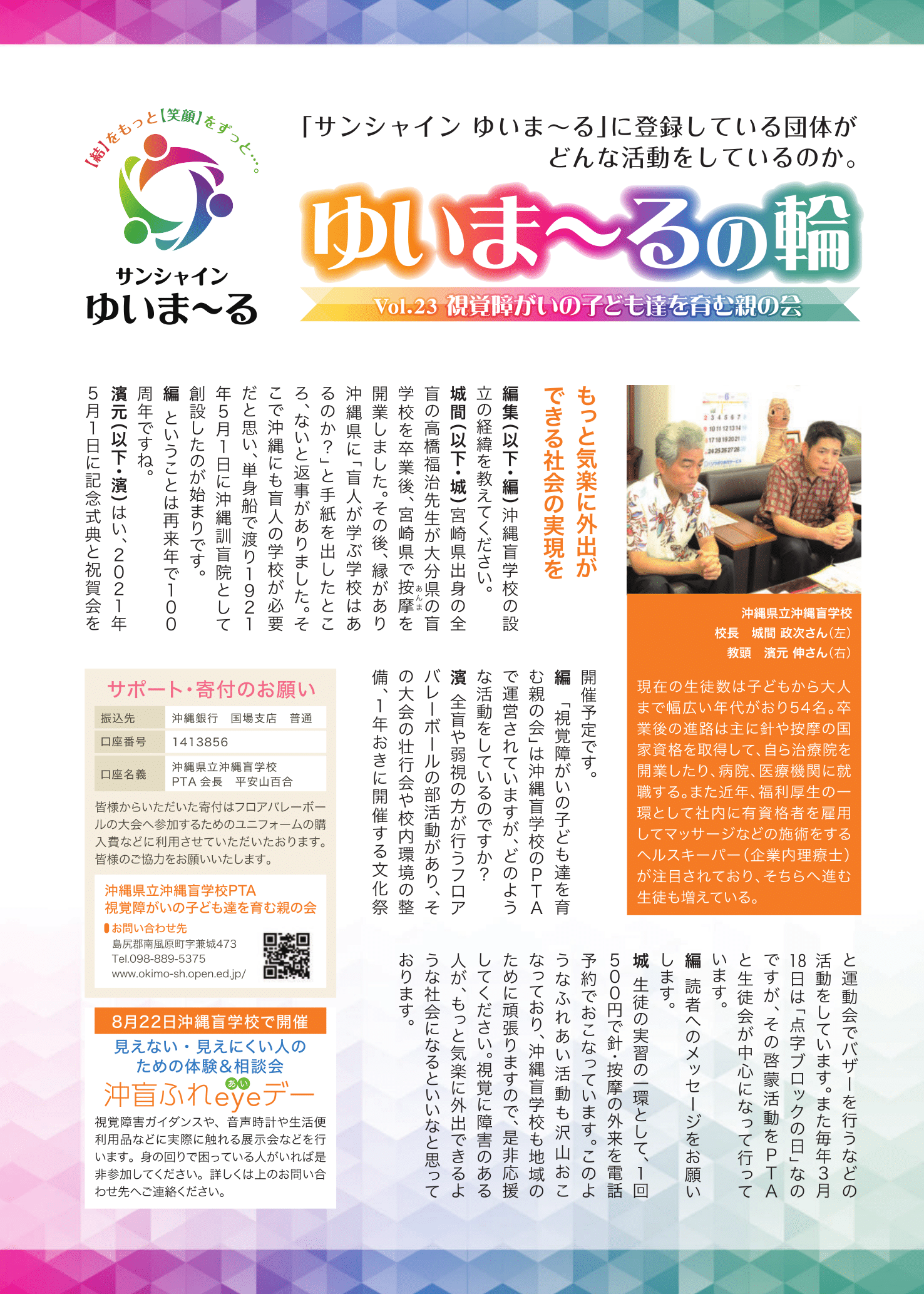 沖縄県網膜色素変性症協会様より御礼状を拝受いたしました。