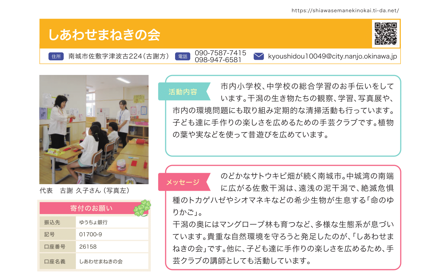 沖縄のNPO法人やボランティア団体などをお客様とともに応援します。