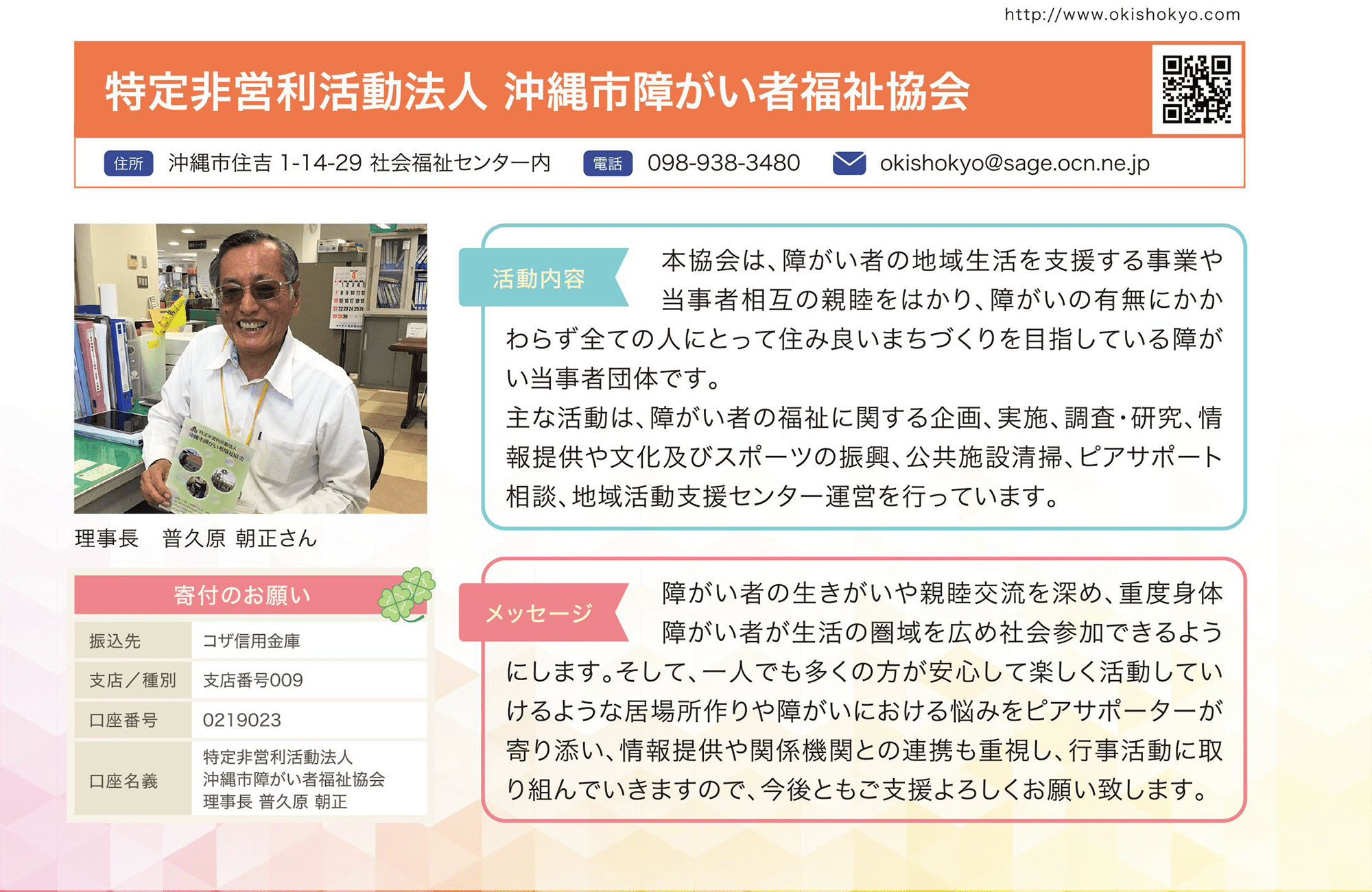 | 19 | ①保健・医療・福祉をささえる団体 | おきなわ重度障がいを持つ方とその家族の生活を考える会 | 確認 |