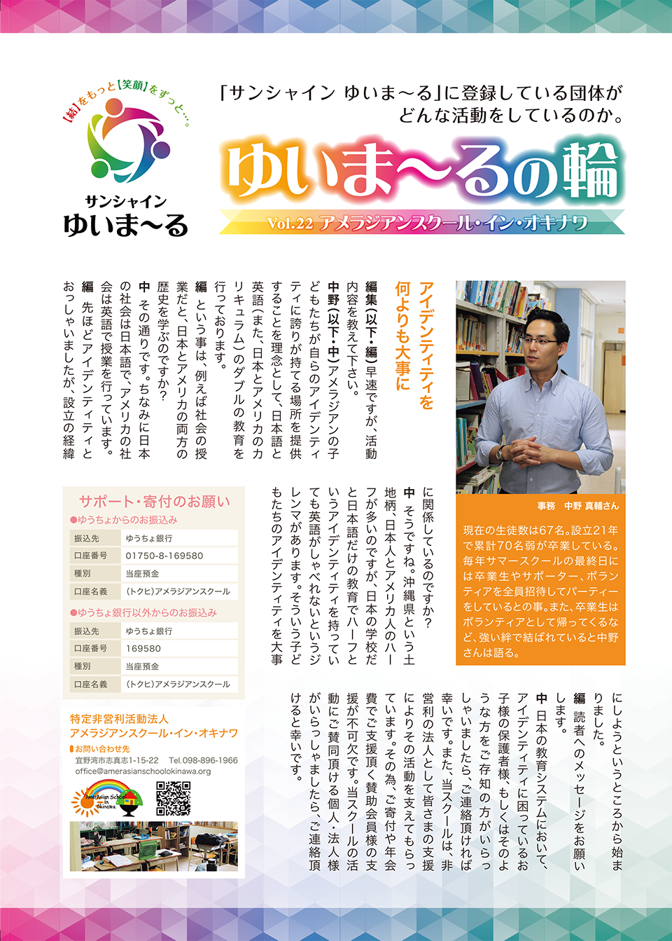 アメラジアンスクール・イン・オキナワ様より御礼状を拝受いたしました。