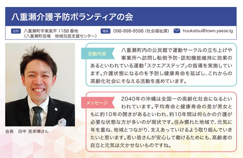 | 21 | ①保健・医療・福祉をささえる団体 | 琉球大学でいご会 | 確認 |