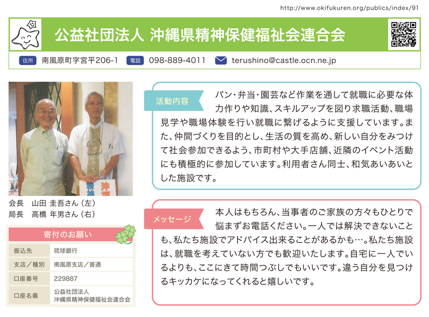 | 8 | ①保健・医療・福祉をささえる団体 | 社会福祉法人 沖縄県視覚障害者福祉協会 | 確認 |