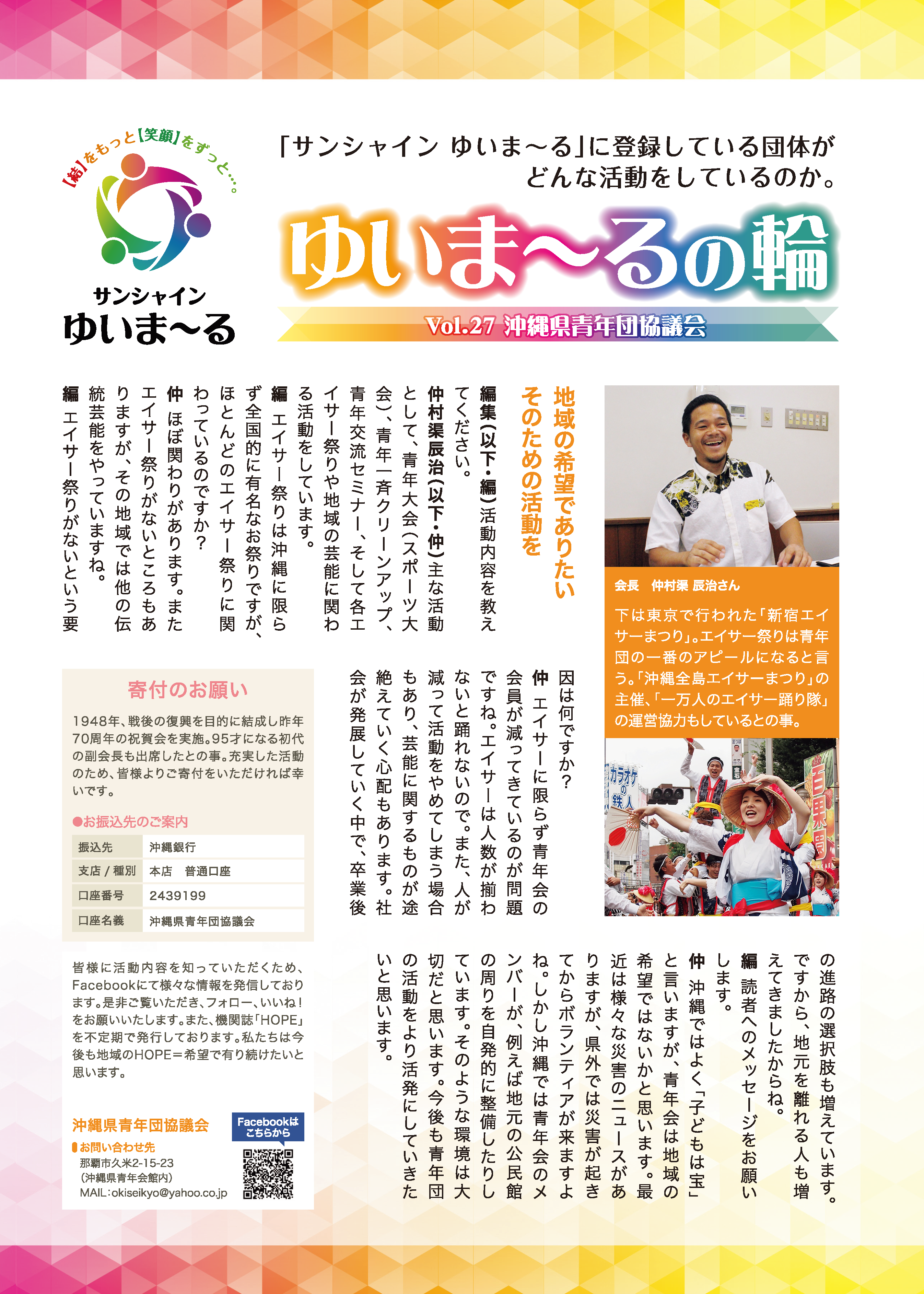 沖縄を元気にする「ゆいま~る」プロジェクトにご賛同頂いた団体様をご紹介いたします。