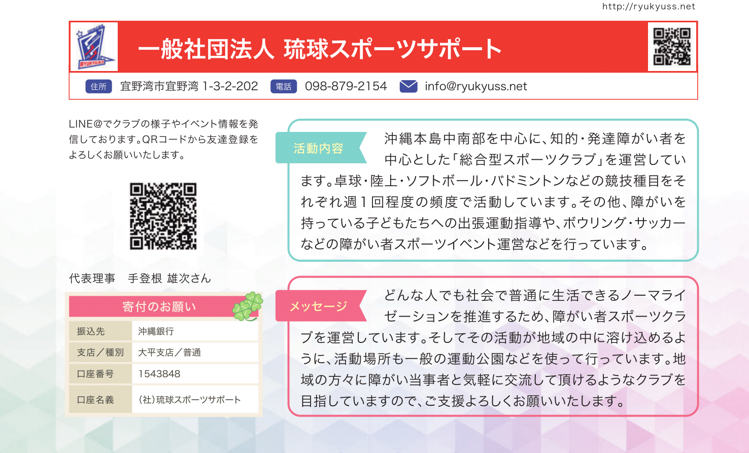 | 14 | ①保健・医療・福祉をささえる団体 | NPO法人パンキャンジャパン 沖縄アフィリエート | 確認 |